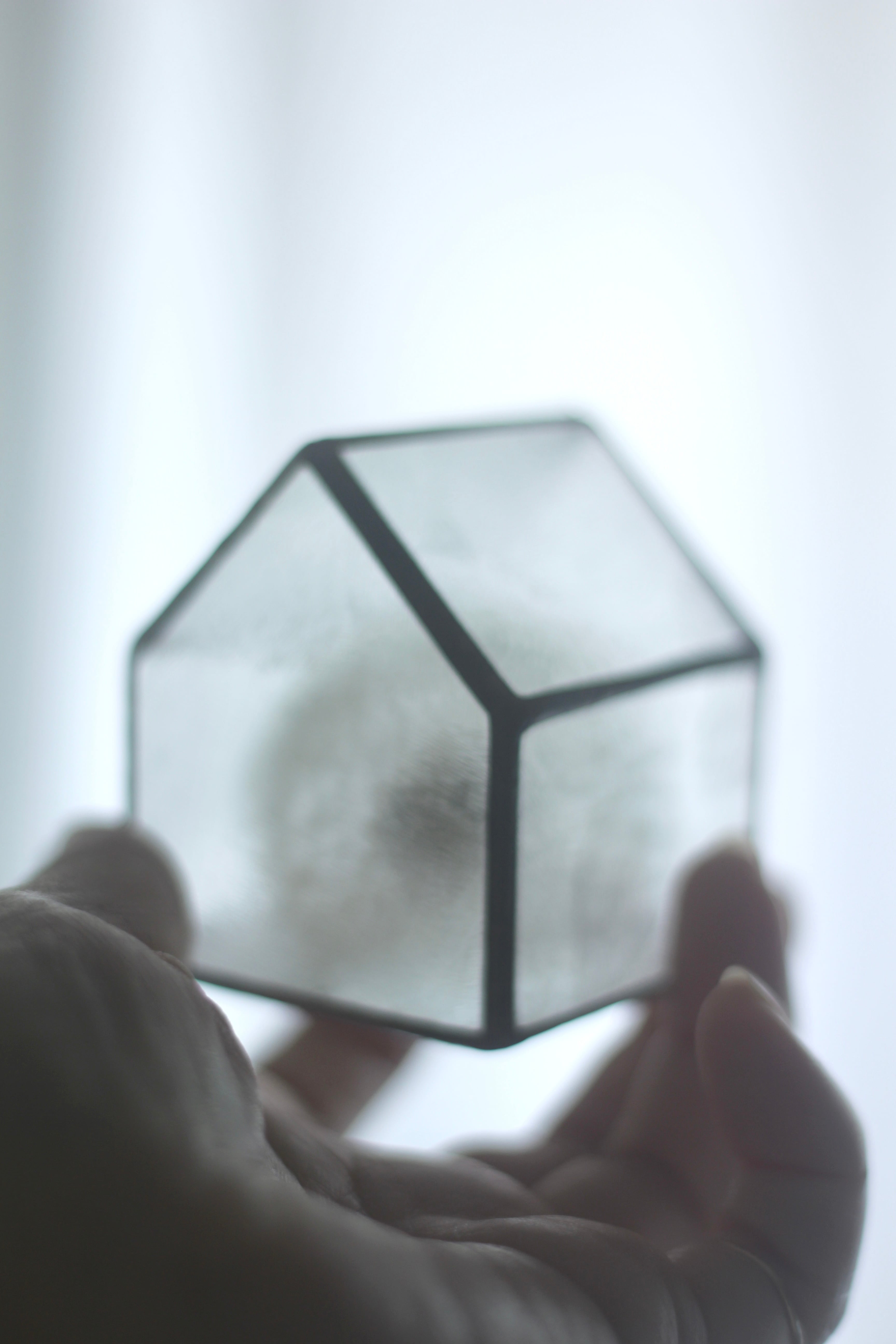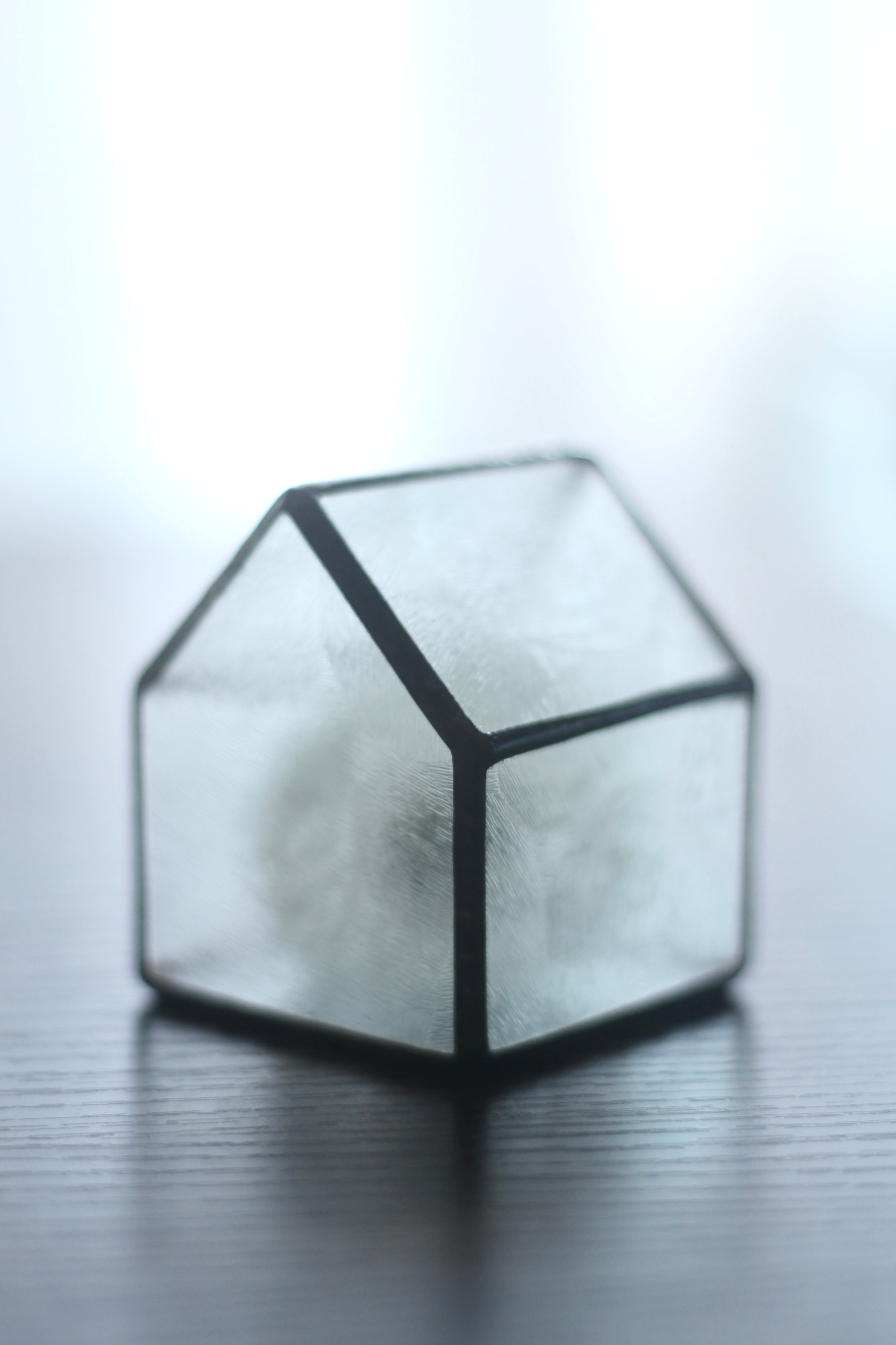 昭和ガラスのおうちの中に春に摘んできてドライにした綿毛が入っています。